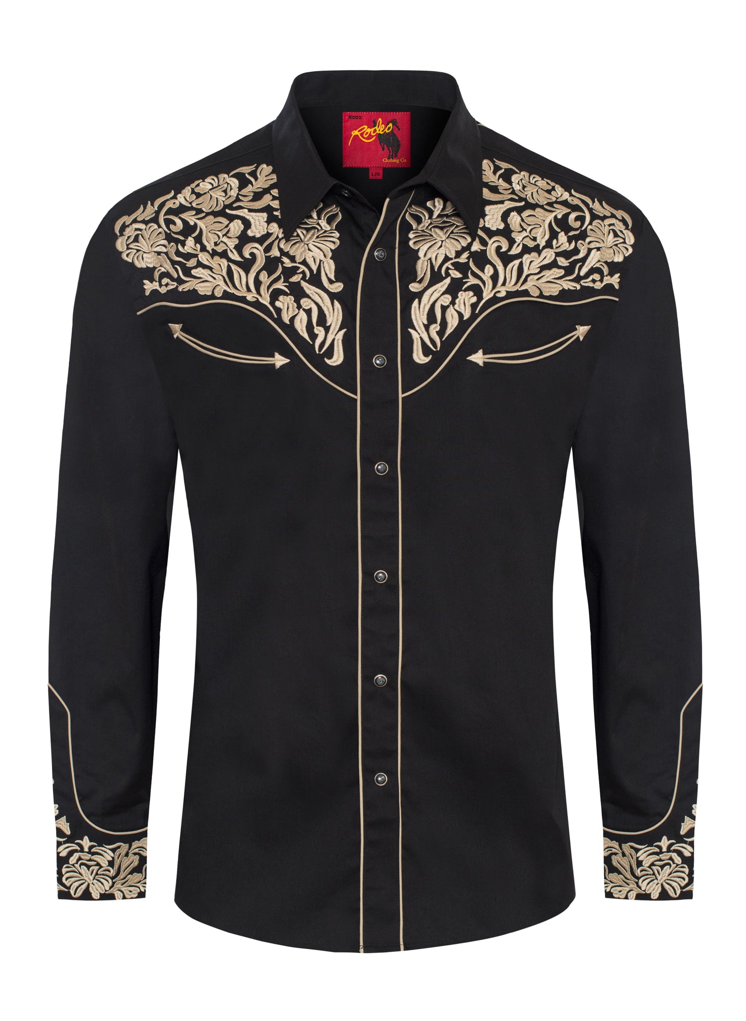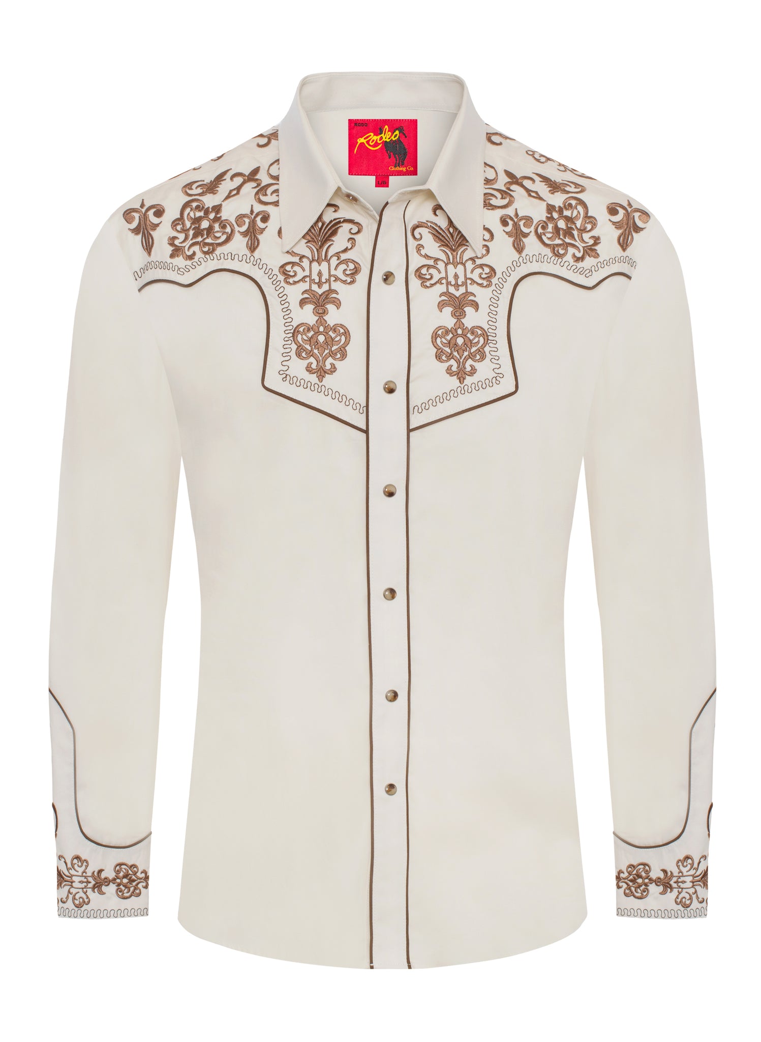 Label: RODEO CLOTHINGDescription: Men's long sleeve cotton/poly western shirts. FABRIC TYPE: Woven COLLAR STYLE: Regular Western Collar...